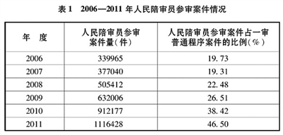 图为2006年~2011年人民陪审员参审案件情况。 新华社发