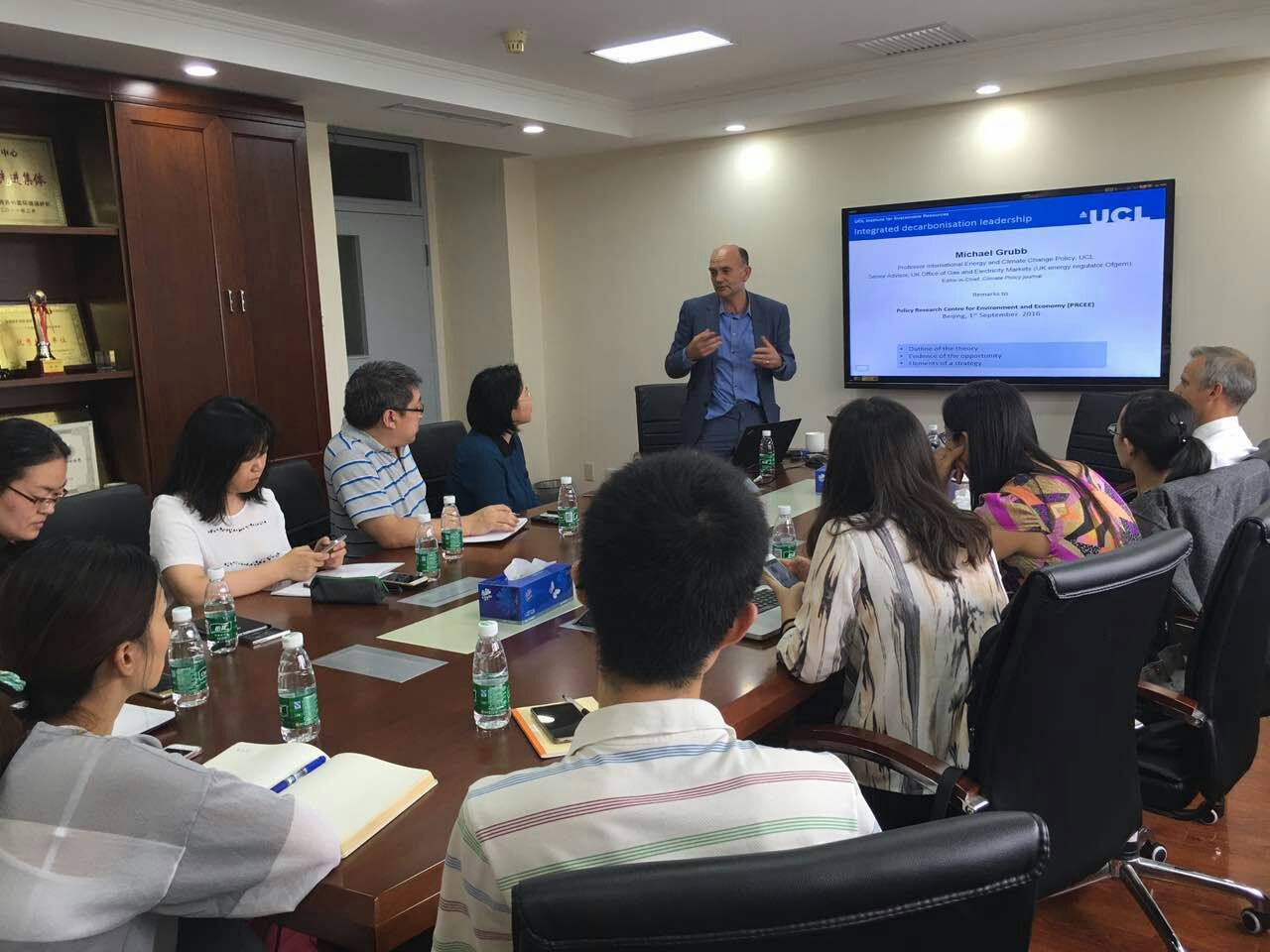 2016年9月1日下午,环保部政研中心组织召开了“《星球经济学》及未来全球气候治理”专题研讨会,主讲嘉宾是英国伦敦城市大学(UCL)的Michael Grubb教授,研讨会由政研中心气候部刘哲博士主持,来自中国农业科学院、国家气象局、外交学院、中国社会科学院、UNIDO中国、Taylor&Francis出版集团、《世界环境》杂志社以及政研中心等单位的代表参加了此次会议。