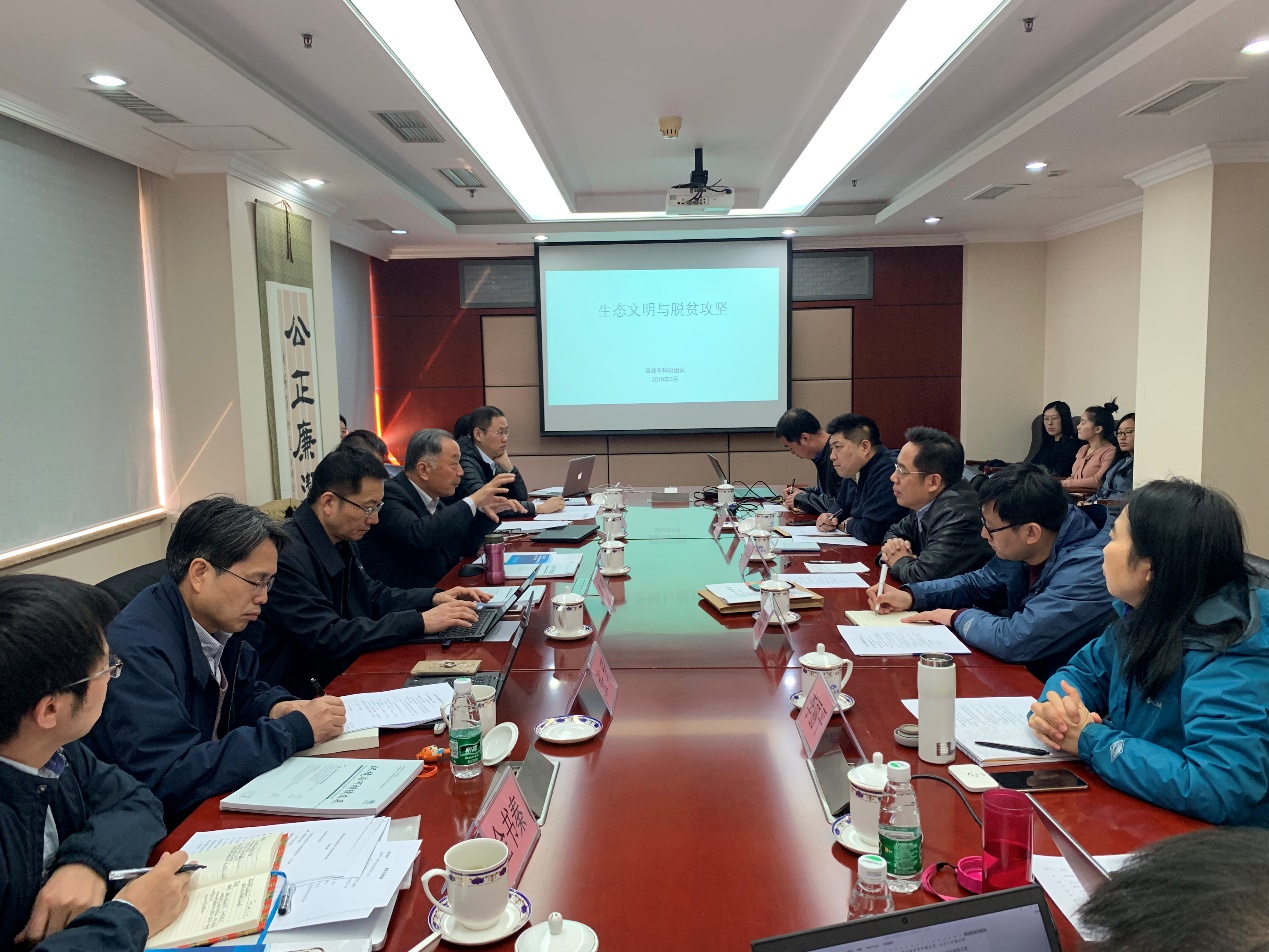 2019年3月30日,政研中心组织召开“生态环保与精准脱贫研讨会”,邀请北京大学、中国人民大学、北京师范大学等高校以及国家信息中心、农业农村部政策研究中心等研究机构的专家学者,从生态环境保护的角度讨论推动精准脱贫的思路举措,为总结凝练“生态环保助力脱贫攻坚”和“生态环保衔接乡村振兴战略”提供工具方法和案例。政研中心主任吴舜泽主持会议,生态环境部生态司、生态环境部脱贫攻坚领导小组办公室有关同志出席会议并参加了讨论,政研中心环保与扶贫研究课题组等相关人员参加了会议。