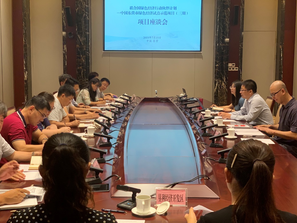 2019年7月15日,中国东营市绿色经济试点示范项目(三期)在山东东营正式启动。东营市政府办公室、发改委、生态环境局、科技局、政府研究室、统计局、东营经济技术开发区、东营胜利工业园、垦利经济开发区等部门的20多位代表参加了项目(三期)启动会,并就东营市工业园区绿色转型进行座谈。生态环境部环境与经济政策研究中心党委副书记兼纪委书记胡军以及环境理论与战略研究部相关人员参加了会议。